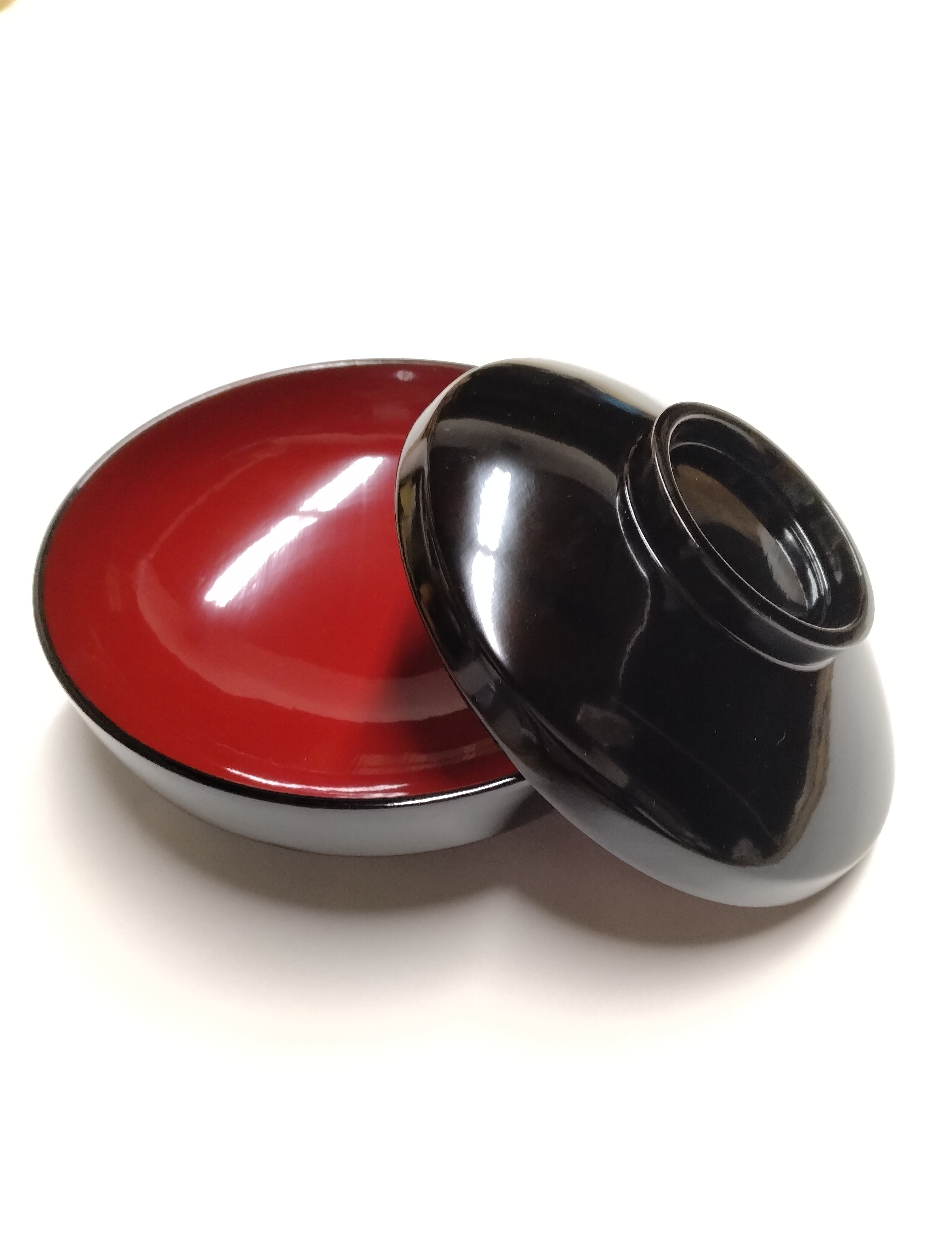 煮物椀黒内朱、羽反夫婦椀の黒内朱、6寸盛り皿黒内朱の3点をセットにした 商品です